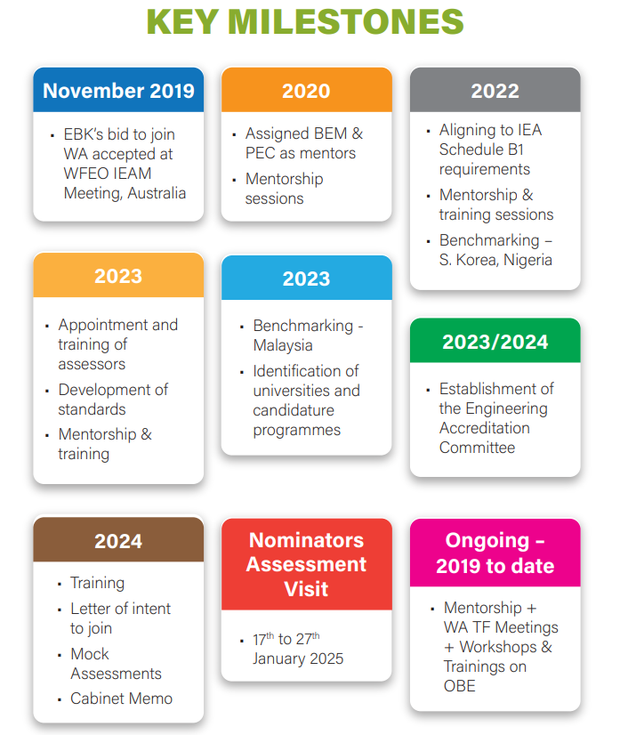 The Engineering Accreditation Committee (EAC) is an independent institution aimed at enhancing the quality and standards of engineering education in Kenya, aligning it with international benchmarks such as the Washington Accord. This profile outlines the history, objectives, and progress of the EAC in its journey towards achieving provisional signatory status at the Washington Accord.